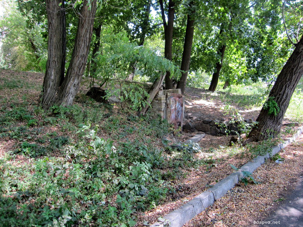 Это все один и тот же адрес, по которому сегодня расположены три здания и остатки древнего вала, засаженные деревьями и травой. В одном из его склонов можно обнаружить два заваренных входа, ведущих внутрь.